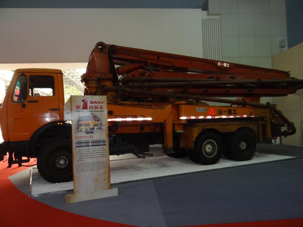 在三一重工的工厂大厅还展示着三一重工自主研发的第一台泵车,1998年研制,1999年交付,它的诞生一举打破了当时洋品牌泵车一统中国的局面,对于中国泵车发展具有划时代的意义。这台泵车在青海工作近11年,2009年收藏进入三一展馆时仍在为客户创造价值,是国内使用寿命最长的泵车。