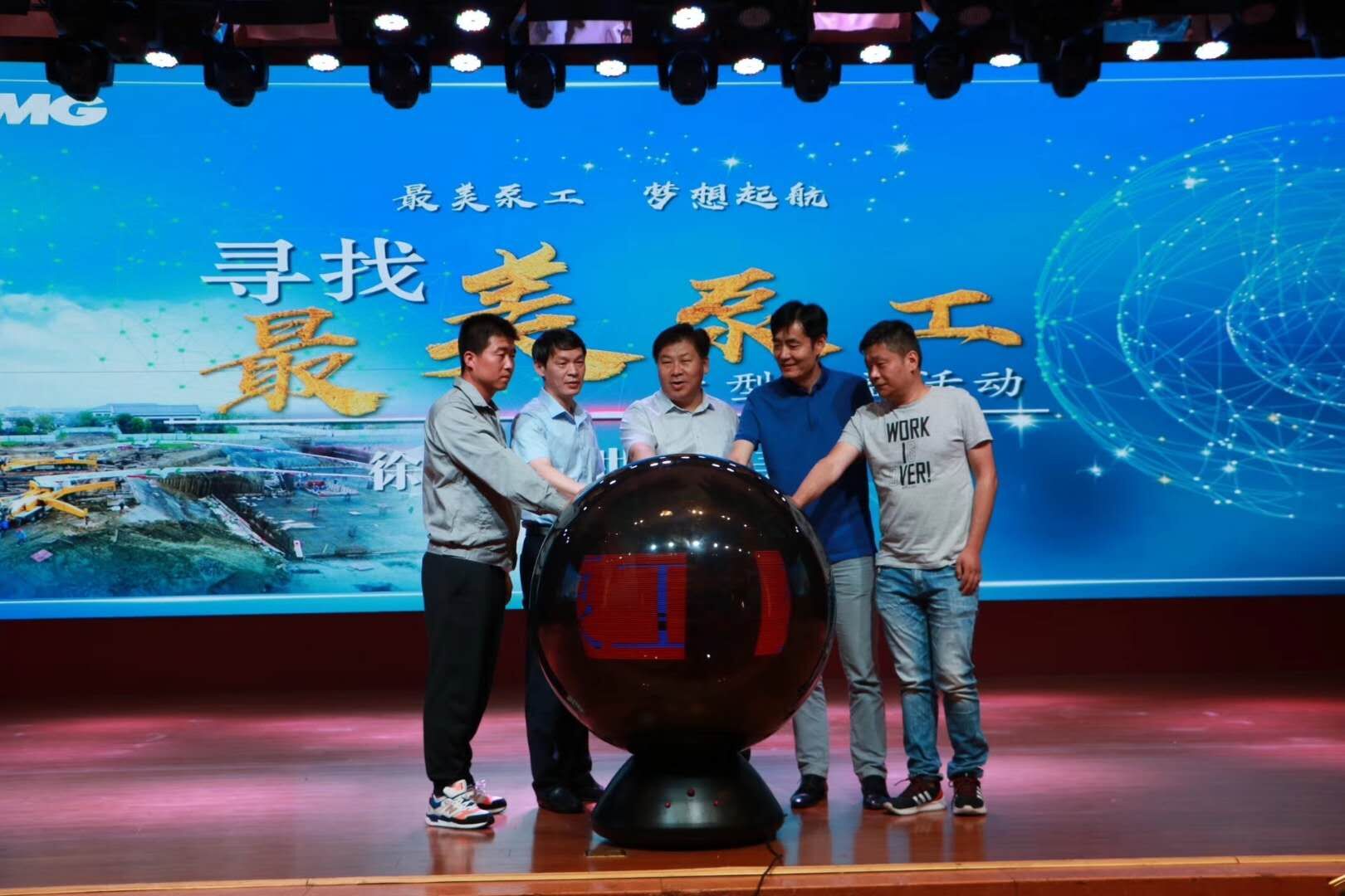 在热烈的掌声中,符忠轩会长、袁宝超秘书长、王贵总经理、客户代表王凤举和泵工代表殷亚坤一起启动水晶球,寻找“最美泵工”大型公益活动正式拉开帷幕。