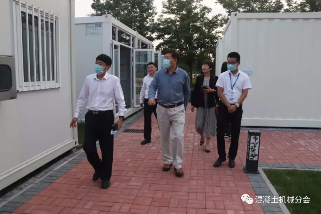 会议室交流结束之后,申总陪同符会长一行参观了公司的集成房屋和搅拌站、PC设备的生产现场,最后在公司楼前合影留念。