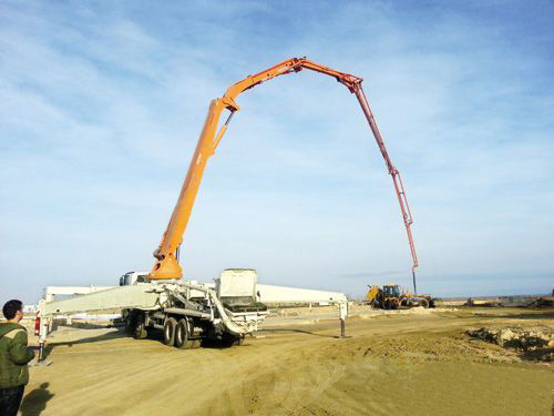 中联重科52米臂架泵车于2013年12月入驻阿塞拜疆,当地气候十分寒冷,作为首台入驻阿塞拜疆的中联泵车,本次交付具有标志性意义。中联重科52米臂架泵车拥有智能仿生6RZ专利、高效大排量、智能温控节能等技术,通过泵送系统、臂架长度和底盘的科学匹配,最大泵送方量达200 m3/h,适合本次大方量工程要求。在国内外各种复杂的工地条件上,其多臂复合运动控制、全行程控制、单边支腿同步操作等技术大大提高了泵送效率,深受客户青睐。