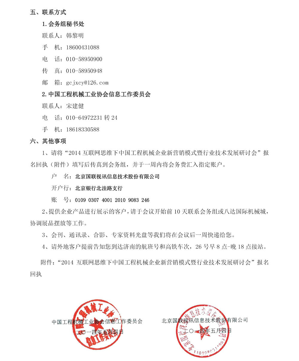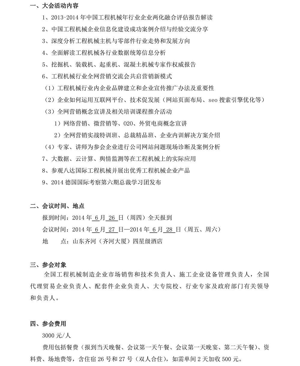 2014互联网思维下中国工程机械企业新营销模式暨行业技术发展研讨会报名回执