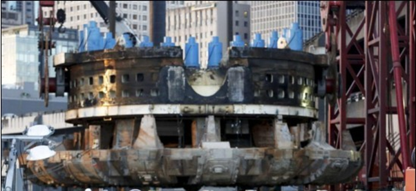 当地时间3月30日,美国,世界最大的隧道掘进机Bertha现身西雅图街头,引得市民围观拍照。这台庞然巨物在2013年进行挖掘工作时出现过热情况后停止工作,此后就一直存放在西雅图地下的一个临时管道内。这次Bertha重现天日是为了进行修复工作,修复完成后,它将继续进行挖掘工作。。 图为Bertha头部露出地面 该信息出自砼商网 (http://www.einsteinshiddenvariables.com)