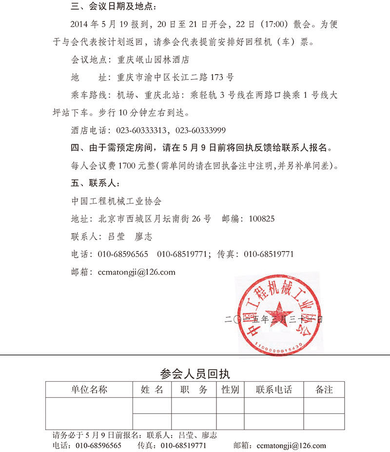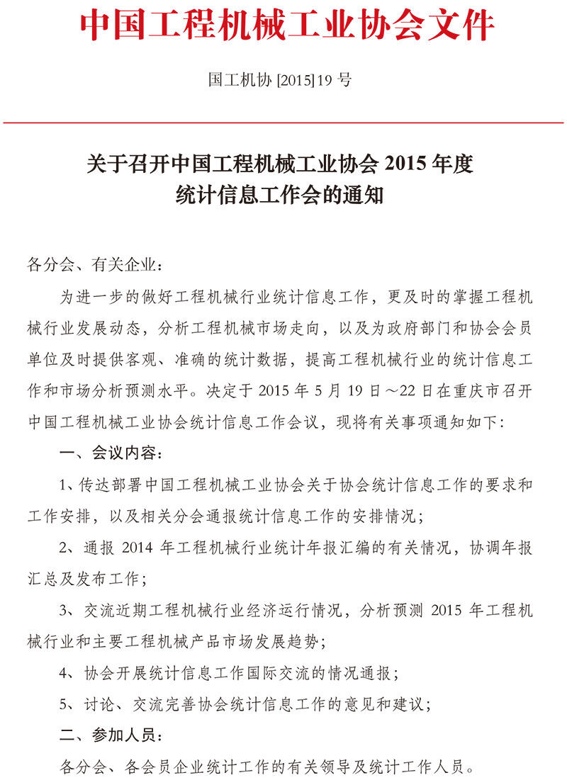 关于召开中国工程机械工业协会2015年度统计信息工作会的通知