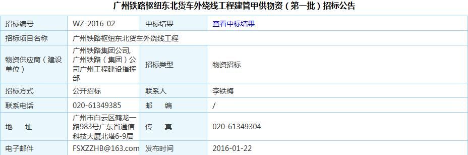 广州铁路枢纽东北货车外绕线工程建管甲供物资招标公告