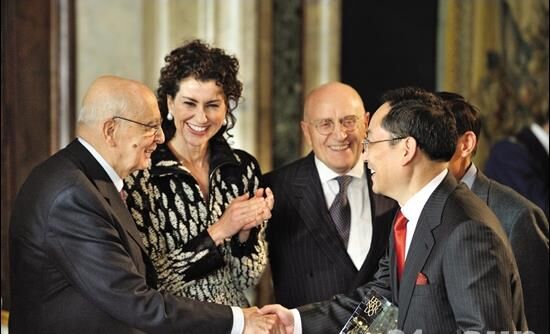 意大利总统纳波利塔诺为中联重科詹纯新颁发“莱昂纳多国际奖”,这是中国企业家首次获该国际奖项。