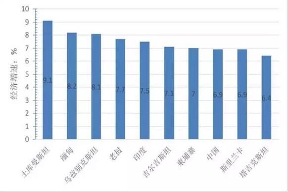 图3 “一带一路”地区经济增速前10名的国家