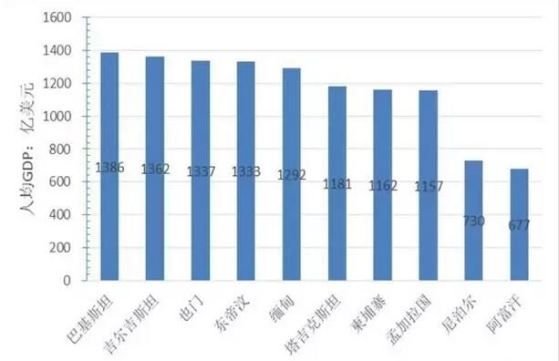 图5“一带一路”地区人均GDP后10名的国家