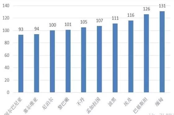 图2“一带一路”地区经济总量后10名的国家