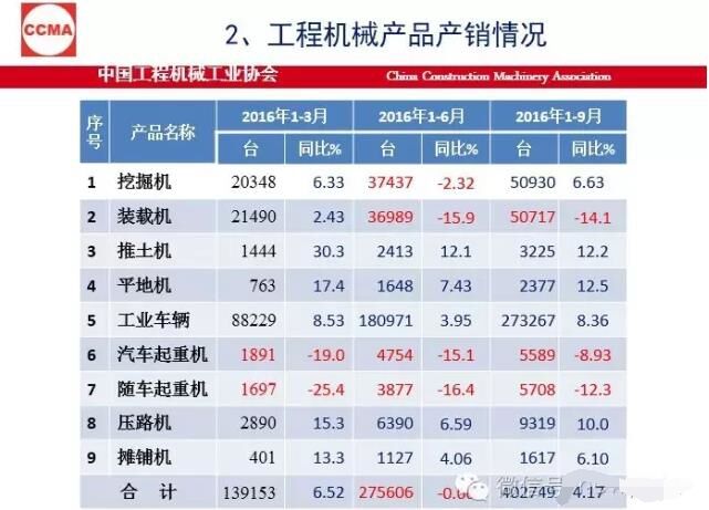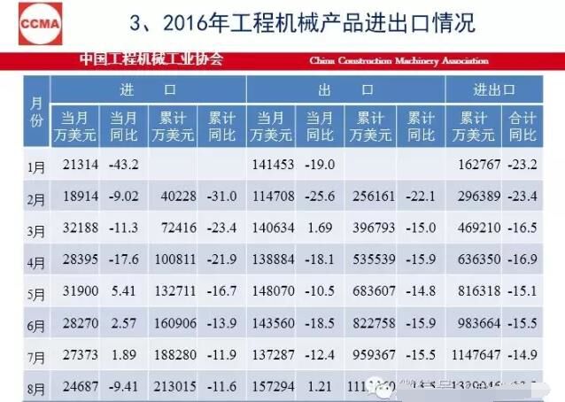 今年9月份挖掘机同比销量增加71.4%,1到9月增长26.3%。出口还是在高位,但是还有13%左右的降幅。在装备制造业里,尤其是机械行业里,我们还是比较好的,进口的数是越来越少。