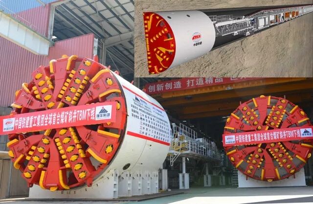 ▲铁建重工自主研制的全球首台斜井双模式岩石隧道掘进机(TBM)