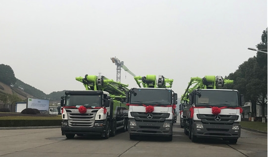 中联重科4.0ued网站泵车在长沙麓谷工业园整装待发