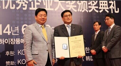 6月19日,在上海长风万豪酒店召开的颁奖仪式上,中国法人孙枓奭常务从驻上海大韩民国总领事馆具相燦总领事手中接过优秀企业奖。本次颁奖旨在促进进军中国的韩国企业履行社会责任,是驻上海大韩民国总领事馆今年首次设立的奖项,奖项包含从△同伴成长