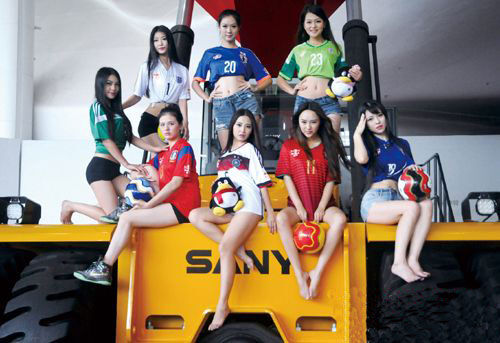 目前,最湖南之湘女郎足球宝贝大赛16强选手已经产生,有4位在三一拍摄过大片的宝贝入围。8位足球宝贝分别穿着各自支持的世界杯球队服装,紧贴三一产品,或立或坐,摆出各种拍摄姿势。在三一产品的映衬下,足球宝贝显得格外较小,而她们的气质也让身边的产品感觉多了几分柔和。当魅力四射的足球宝贝遇上时尚大气的重型机械将会是一种什么样的场面?6月14日,最湖南之湘女郎足球宝贝大赛的选手们就来到了三一长沙产业园,展现了一场美女与机械的激情碰撞。