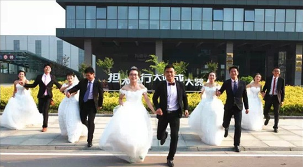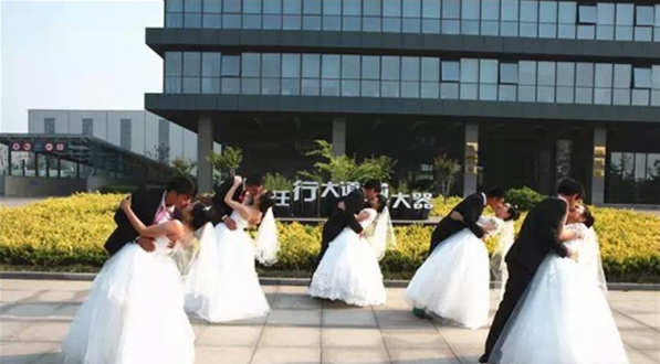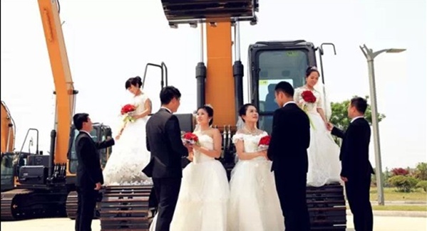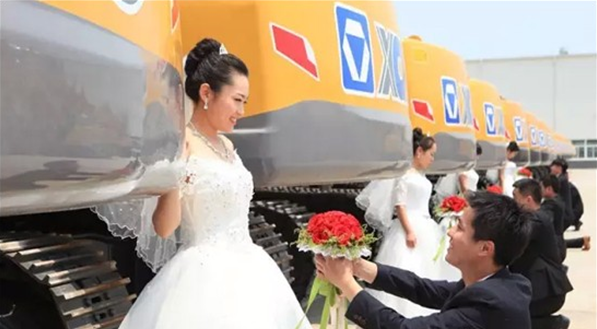 缤纷的礼花、鲜红的玫瑰、洁白的婚纱、幸福的笑容……一幅美丽浪漫的爱情画卷在徐工挖机尽情舒展。5月16日,徐工挖机5对新人在公司领导、亲人、同事的共同见证下互赠爱情信物、宣读爱情宣言、述说浪漫故事……许下相伴一生的诺言:情定徐工,相约百年!