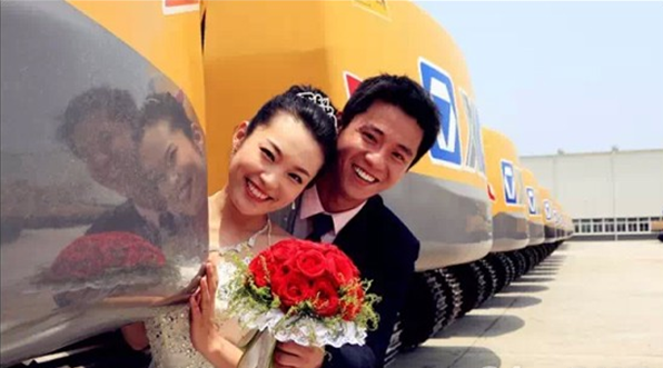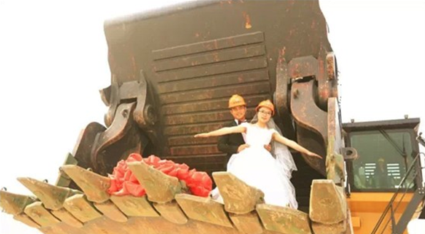 史上最大的婚车,史上最酷的爱情长廊,史上最阔绰的求婚,史上最霸气的婚照---当爱情绽放在徐工,听说婚纱和挖掘机更配哦。