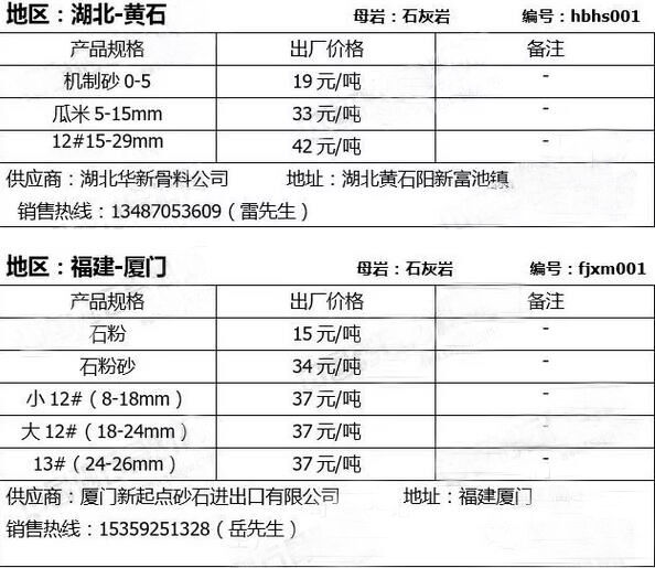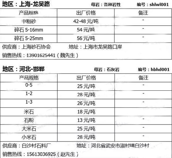 大宗砂石在线交易是“互联网+砂石”生态圈重要一环,今日小编给大家整理此份报价表旨在帮助广大砂石需求商(搅拌站、工程建设单位、砂石贸易商等)以最快捷、最高效、最优惠的方式来获取优质的砂石产品,同时也为诚信优秀的砂石企业打开一扇创新之窗,让好的企业得到良性发展,让好的砂石产品获得市场机会,砼商网将定期为市场提供各种规格的砂石产品及报价信息,敬请关注!