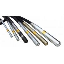 4、配套振动棒橡胶软管为65Mn钢丝管,棒头材质为合金钢4OCr,棒头与软管连接处带合金护簧或加粗,比普通振动棒更加耐用。