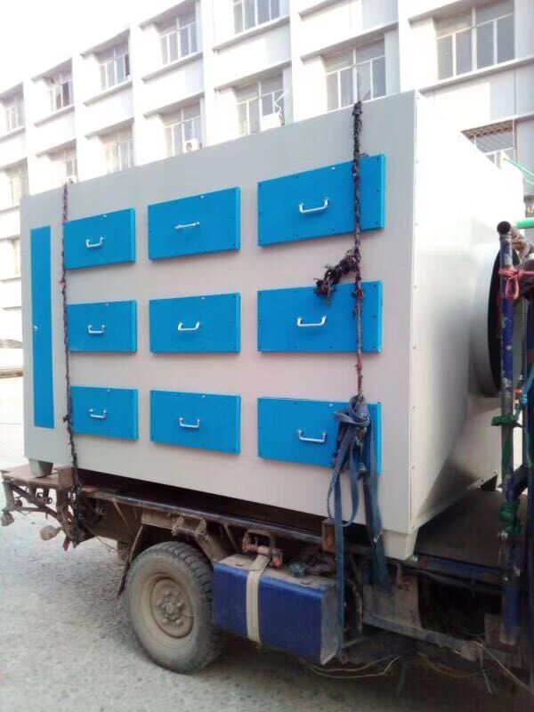 当有机废气气体由风机提供动力,正压或负压进入塔体,由于活性炭固体表面上存在着未平衡和未饱和的分子引力或化学健力,因此当此固体表面与气体接触时,就能吸引气体分子,使其浓聚并保持在固体表面,污染物质及气味从而被吸附,废气经活性炭吸附塔后,进入设备排尘系统,净化气体高空达标排放。