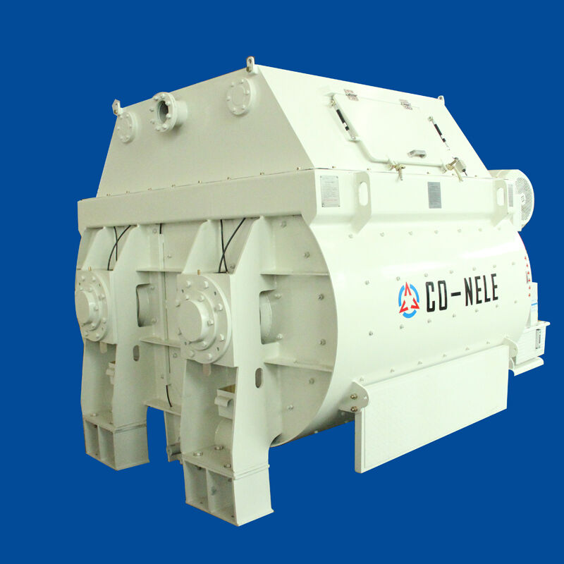 普通双卧轴搅拌机的搅拌臂轴向及径向均为流线型,搅拌过程中不仅对物料产生径向切割作用,而且更有效的起轴向推动作用,使物料搅拌更剧烈,短时间达到ued网站的均质状态,且由于搅拌装置设计独特,能提高了水泥的利用率。而具有专利设计的双螺带搅拌装置,搅拌过程两轴相向转动,叶片产生的搅拌力,使搅拌进物料在保证剧烈径向运动的同时,轴向推动加剧,物料在搅拌筒内成沸腾状态短时间内剧烈而充分搅拌,搅拌效率提高10%~15%,其它结构搅拌机与之相比甚远。从而使搅拌形式更多样化,根据不同的ued网站要求,使搅拌更均匀,效率更高。