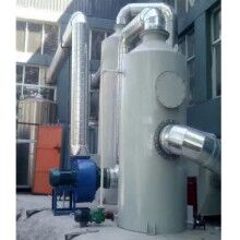 工作原理:废气洗涤塔属两相逆向流填料废气吸收塔。废气气体从塔体下方进气口沿切向进入废气吸收塔,在通风机的动力作用下,迅速充满进气段空间,然后均匀的通过均流段上升到第一级填料吸收段。在填料的表面上,气相中酸性物质与液相中碱性物质发生化学反应。反应生成物油(多数为可溶性盐类)随吸收液流入下部储液槽。未完全吸收的废气气体继续上升进入第一级喷淋段。在喷淋段中吸收液从均布的喷嘴高速喷出,形成无数细小雾滴与气体充分混合、接触、继续发生化学反应。然后酸性气体上升到第二级填料段,喷淋段进行与第一级类似的吸收过程。通过控制废气洗涤塔流速与滞留时间保证这一过程的充分与稳定。对于某些化学活泼性较差的酸性气体,尚需在吸收液中加入一定量的表面活性剂。塔体的最上部是除雾段,气体中所夹带的是吸收液雾滴在这里被清除下来,经过处理之后的洁净空气从废弃吸收塔上端排气管放入大气。