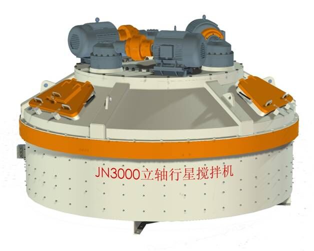 JN型立轴行星式搅拌主机除了具有JS型搅拌主机配置的角传动减速机和专利监控系统的特点外,还有以下特点: