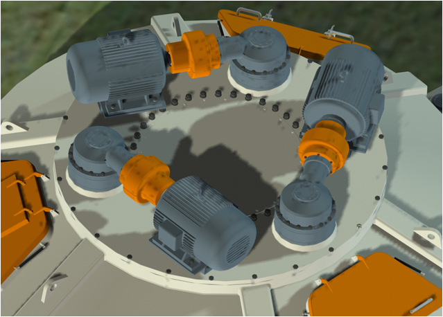 ④对于大型立轴行星式搅拌主机,我们采用多电机驱动,其起动平稳、可靠性高。独特的电机卧式安装结构,有效降低了搅拌主机的整体高度,方便运输和安装及搅拌主机进料系统布局,维修更加简便,该主机结构设计我公司已获专利。