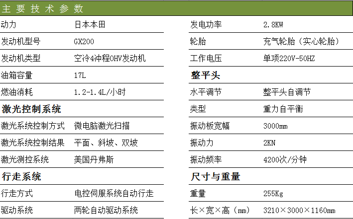 2、奥力德激光整平机的整平原理:依靠液力驱动的整平头,配合激光系统和电脑控制系统在自动找平的同时完成整平工作。整平头上配备有一体化设计的刮板、振动器和整平板,将所有找平、整平、振捣压实工作集于一身,并一次性完成。电脑控制系统每秒10次实时自动调整标高,均衡设计的振动器振动频率达4000次/分钟。